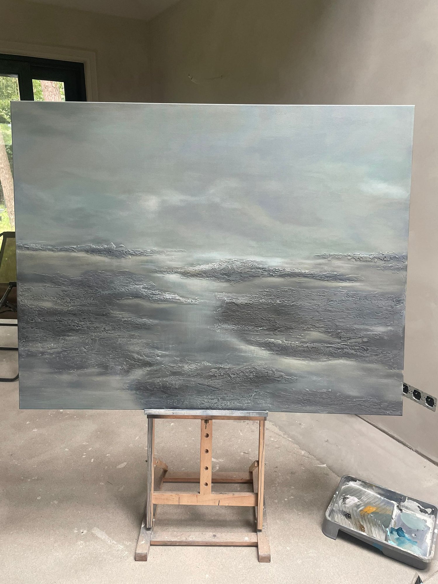 Moje obrazy powstają w naszym domu w lesie – w miejscu pełnym ciszy i przestrzeni do refleksji. Otoczenie natury daje mi spokój i inspirację, a każda praca rodzi się w atmosferze harmonii i skupienia. To właśnie w tym zaciszu mogę w pełni oddać się procesowi twórczemu, pozwalając kolorom i kształtom swobodnie się rozwijać.